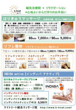 数ある治療院、マッサージ院の中から、ケイトリートをお選びいただきまして本当にありがとうございます。
